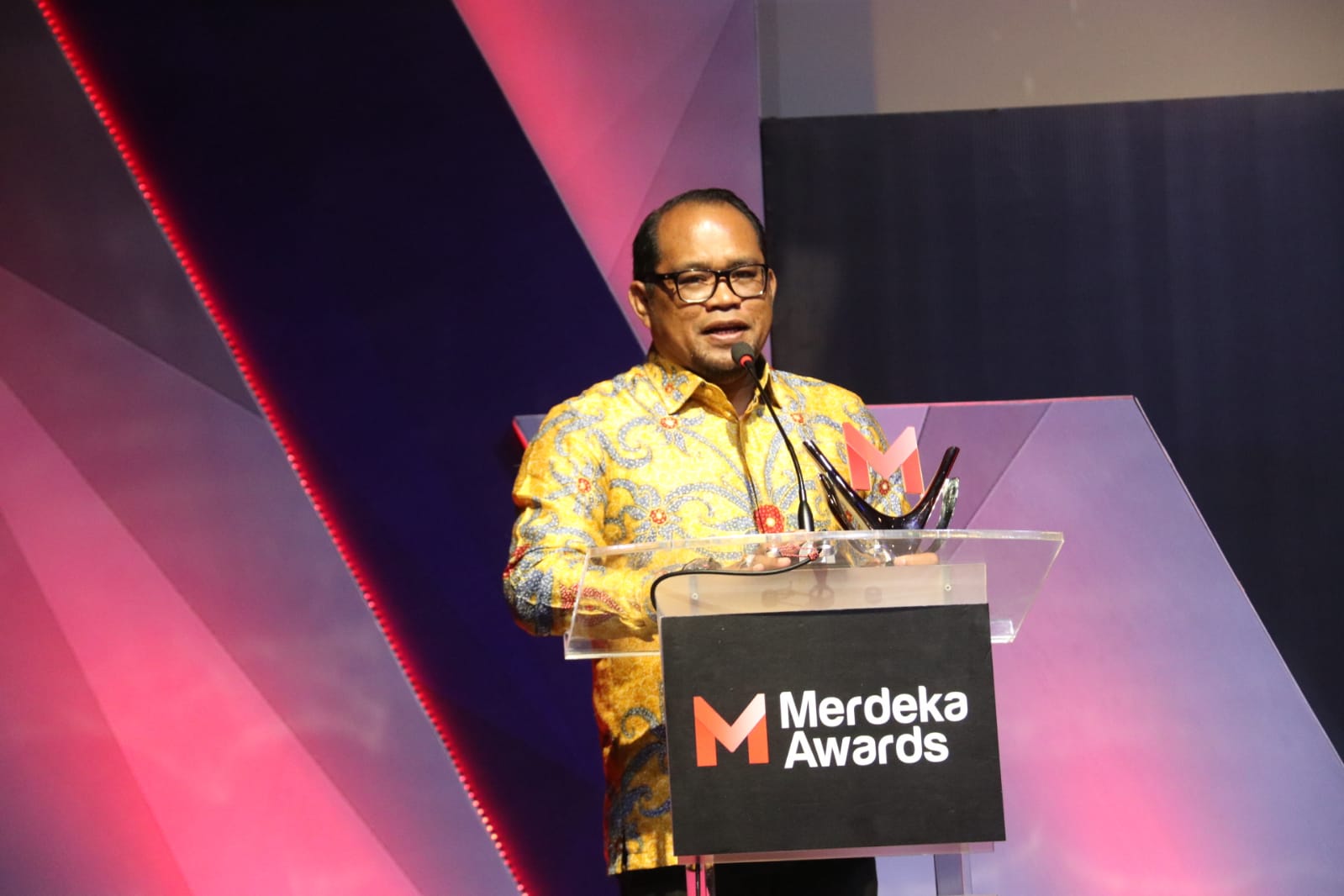 Sebelumnya Menteri Pariwisata dan Ekonomi Kreatif Republik Indonesia Sandiaga Uno dalam sambutannya secara virtual mengucapkan selamat dan sukses atas penyelenggaraan Merdeka Award 2023.